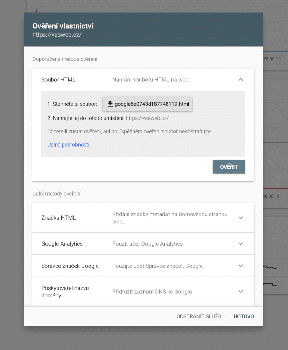 Pomocí služby Doména přidáte do Search Console všechny varianty webové stránky a případné subdomény najednou. Doporučuji využít tuto metodu.